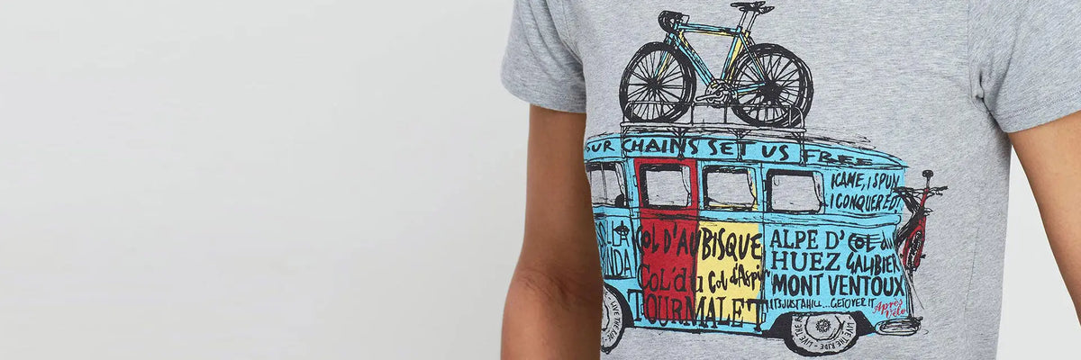 [banner]Our range of high quality design Women's T-shirts are printed with a twist - a sense of fun, either overtly, or through subtle design features. This stylish collection of Women's cycling inspired T-shirts captures the essence of cycling and all it has to offer - fun, freedom and friendships. Live the Ride. Live the Dream. The styling of these T-shirts are specifically designed for the female body, with different neck shape options and fits.